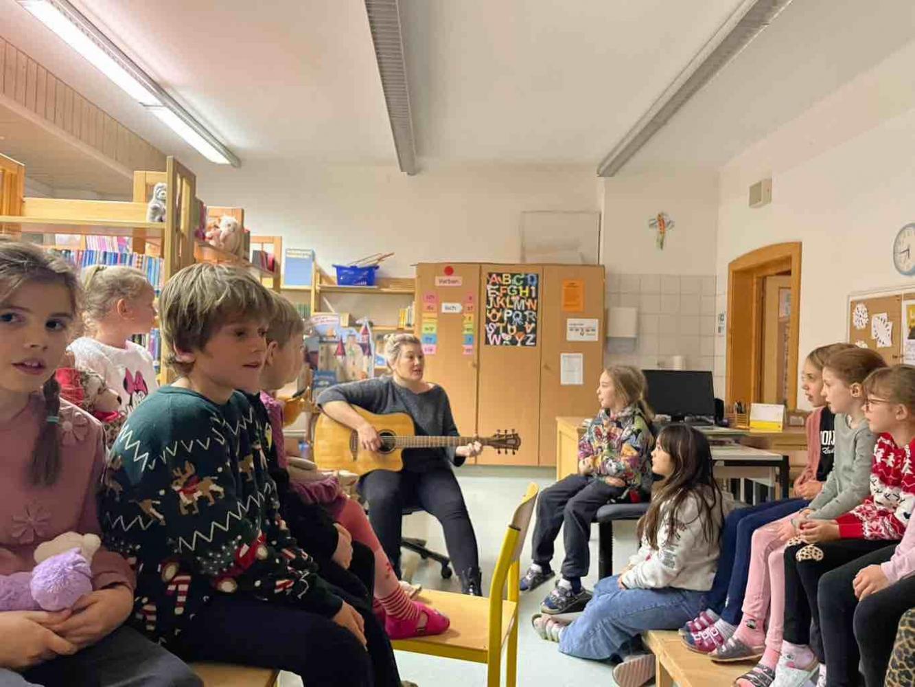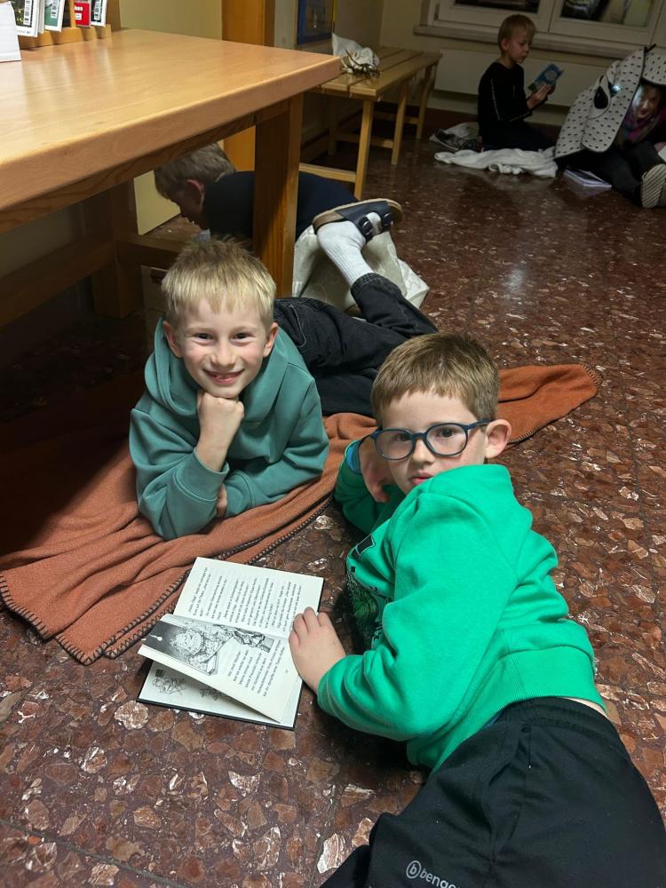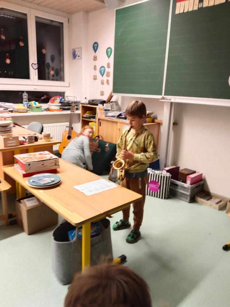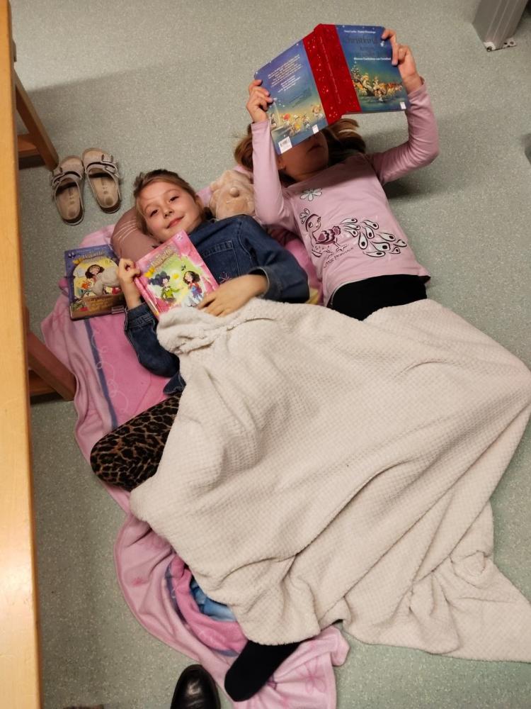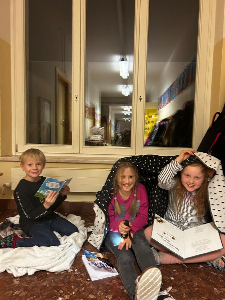 Gemeinsam wurde gesungen und eine Weihnachtsgeschichte gelesen. Mit Taschenlampen folgten die Kinder einer Lesespur durch das ganze Schulhaus. Außerdem konnten sie sich in der Sporthalle so richtig austoben. Das Basteln, Musizieren und Lesen in den eigenen mitgebrachten Büchern kam auch nicht zu kurz.